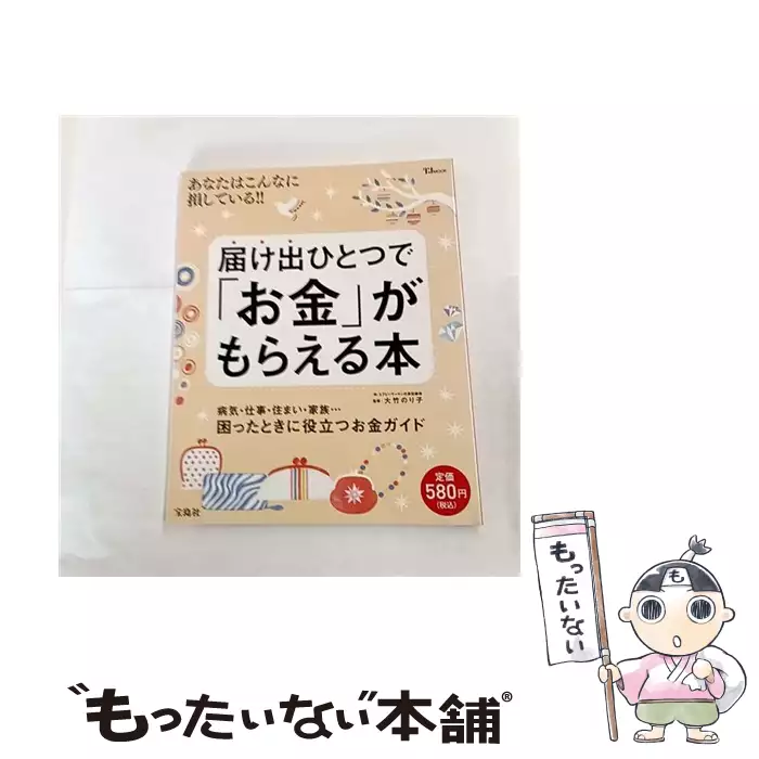 届け出ひとつで「お金」がもらえる本 あなたはこんなに損している!! 病気・仕事・住まい・家族…困ったときに役立つお金ガイド (TJ MOOK) / 大竹のり子 / 宝島社 【送料無料】【中古】