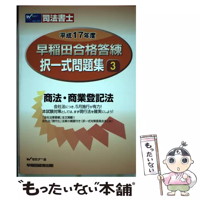 早稲田合格答練択一式問題集 司法書士 平成17年度 3 商法・商業登記法 / Wセミナー、早稲田セミナー / 早稲田経営出版 【送料無料】【中古】