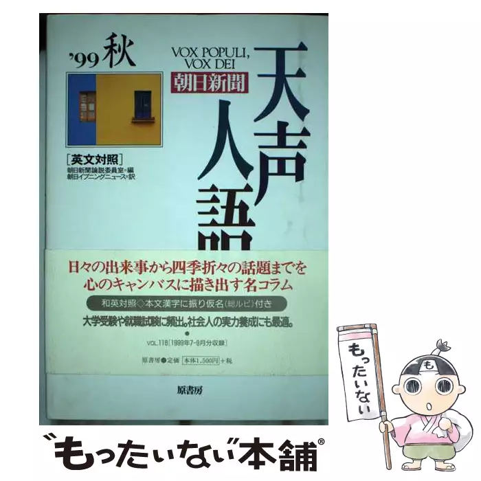 天声人語 英文対照 朝日新聞 = Vox populi, vox Dei Vol. 118 '99秋 / 朝日新聞論説委員室、朝日イブニングニュース / 原書房 【送料無料】【中古】
