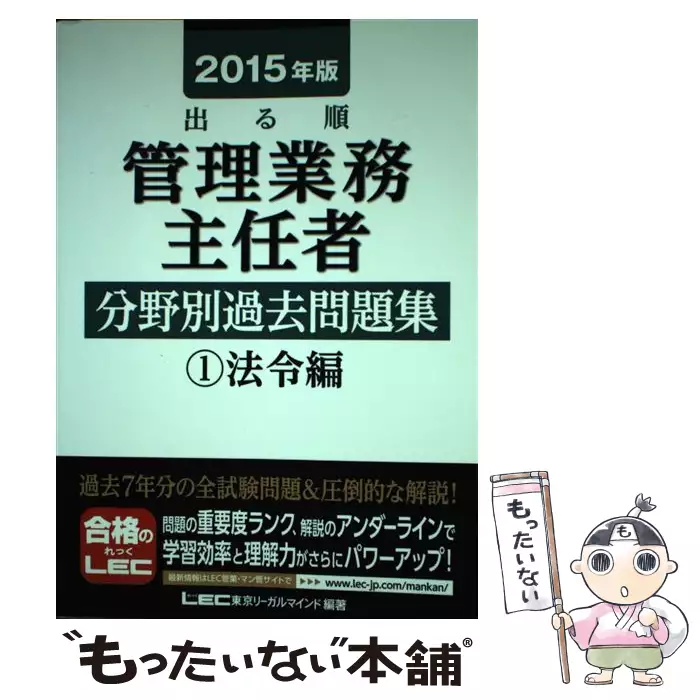 出る順管理業務主任者分野別過去問題集 2015年版1 法令編 / 東京リーガルマインドLEC総合研究所マンション管理士・管理業務主任者試験部 / 東京リーガルマインド 【送料無料】【中古】