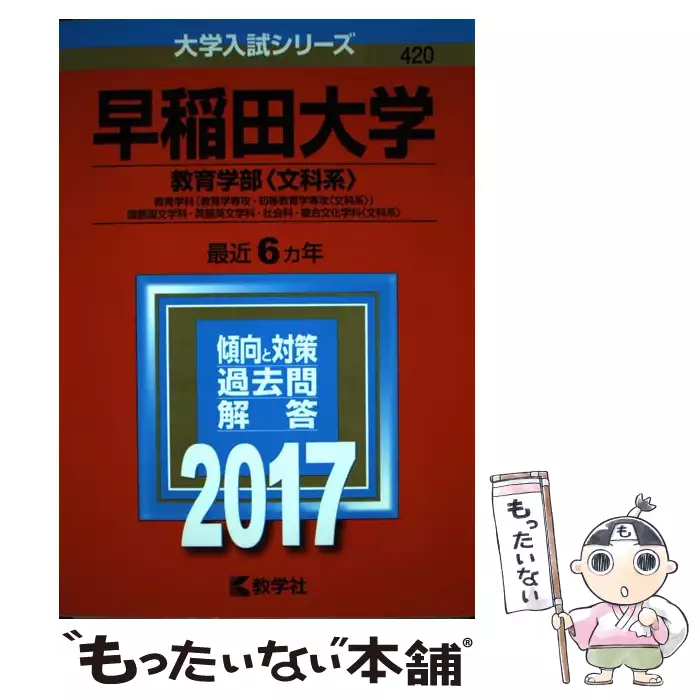 早稲田大学 教育学部〈文科系〉 教育学科〈教育学専攻・初等教育学専攻〈文科系〉〉 国語国文学科・英語英文学科・社会科・複合文化学科〈文科系〉 2017年版 (大学入試シリーズ 420) / 教学社 / 教学社 【送料無料】【中古】