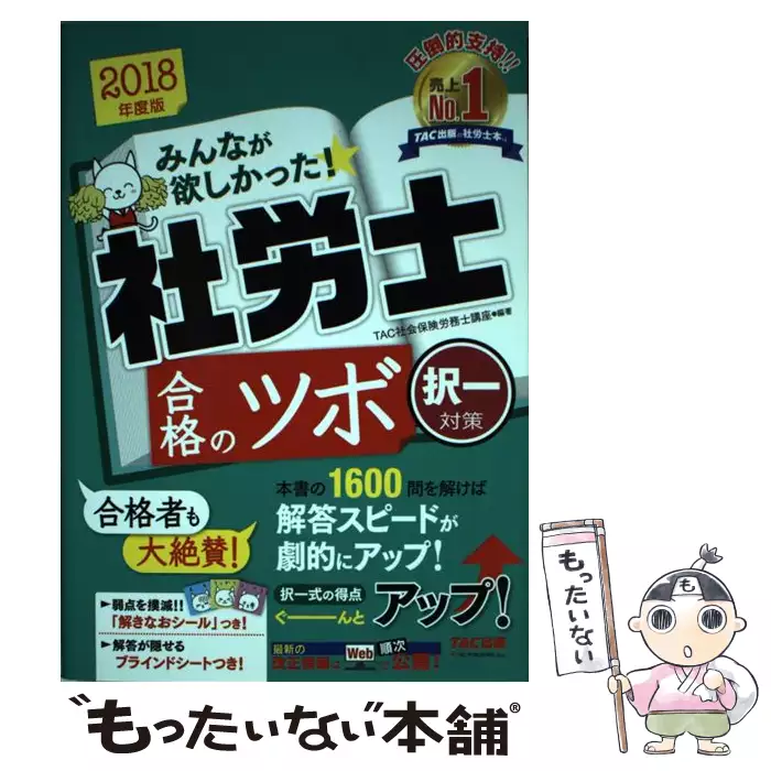 みんなが欲しかった!社労士合格のツボ 2018年度版択一対策 / TAC株式会社(社会保険労務士講座) / TAC株式会社出版事業部 【送料無料】【中古】
