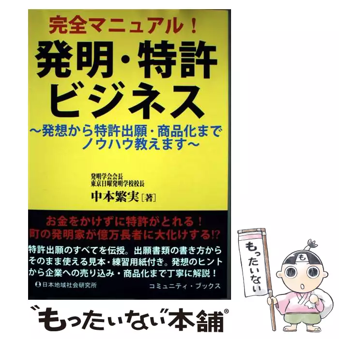 完全マニュアル!発明・特許ビジネス 発想から特許出願・商品化までノウハウ教えます (コミュニティ・ブックス) / 中本 繁実 / 日本地域社会研究所 【送料無料】【中古】