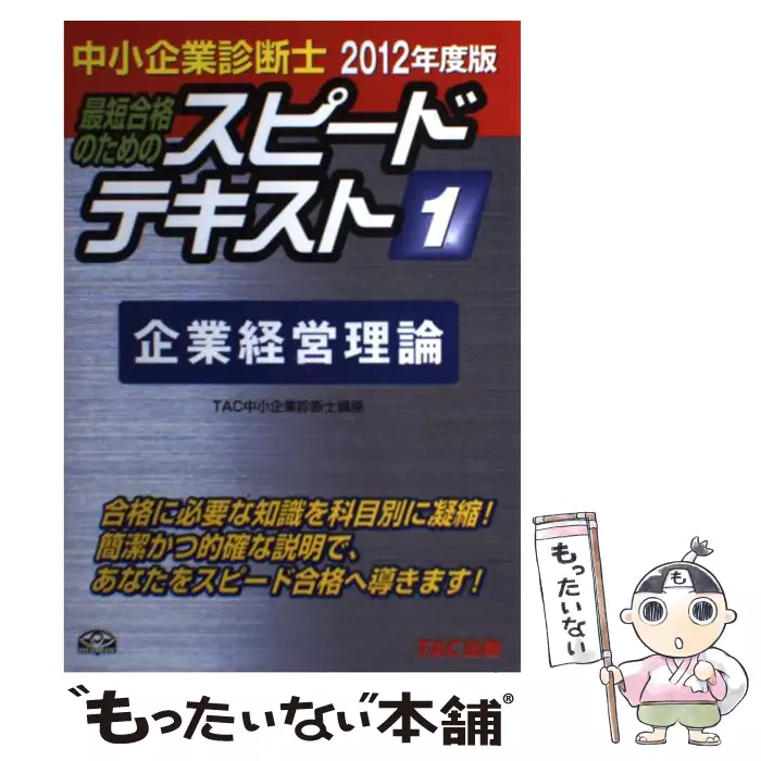 最短合格のためのスピードテキスト 中小企業診断士 1 2012年度版 企業経営理論 / TAC株式会社 (中小企業診断士講座)、タック / TAC出版事業部 【送料無料】【中古】