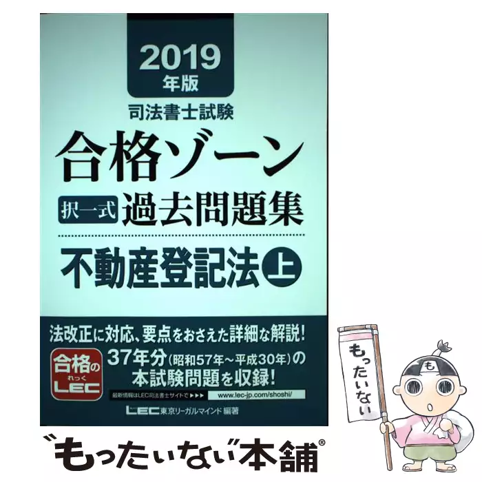 司法書士試験合格ゾーン択一式過去問題集不動産登記法 2019年版上 / 東京リーガルマインドLEC総合研究所司法書士試験部 / 東京リーガルマインド 【送料無料】【中古】