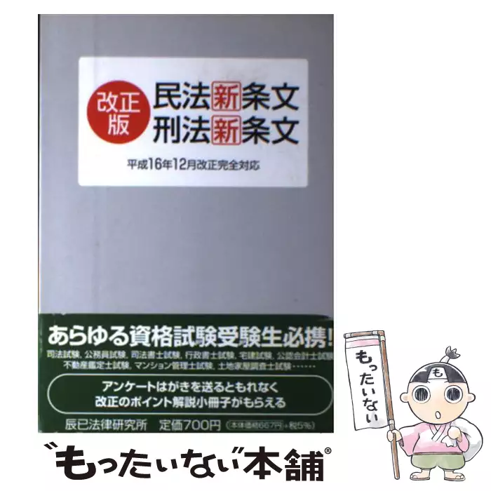 改正版民法新条文・刑法新条文 平成16年12月改正完全対応 / 辰已法律研究所 / 辰已法律研究所 【送料無料】【中古】