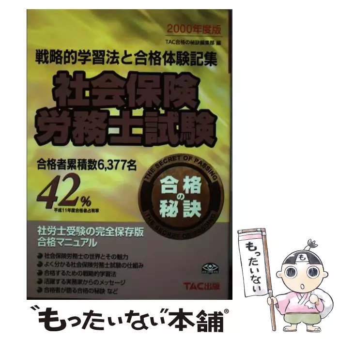 社会保険労務士試験合格の秘訣 戦略的学習法と合格体験記集 2000 / TAC合格の秘訣編集部、タック / TAC出版事業部 【送料無料】【中古】