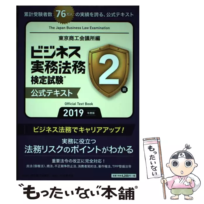 ビジネス実務法務検定試験2級公式テキスト 2019年度版 / 東京商工会議所検定センター / 東京商工会議所検定センター 【送料無料】【中古】