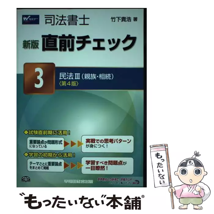 司法書士直前チェック 3 民法 3 親族・相続 新版 第4版 / 竹下貴浩 / 早稲田経営出版 【送料無料】【中古】