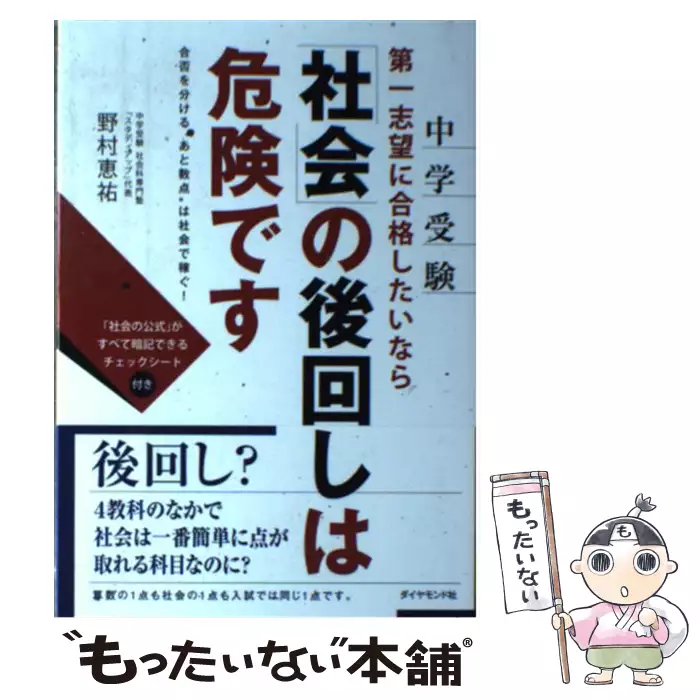 中学受験 第一志望に合格したいなら「社会」の後回しは危険です 合否を分ける“あと数点"は社会で稼ぐ! / 野村 恵祐 / ダイヤモンド社 【送料無料】【中古】