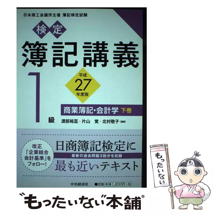 検定簿記講義1級商業簿記・会計学 日本商工会議所主催簿記検定試験 平成27年度版下巻 / 渡部裕亘 片山覚 北村敬子 / 中央経済社 【送料無料】【中古】