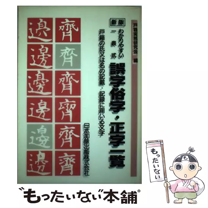 わかりやすい一表式誤字俗字・正字一覧 戸籍の氏又は名の記載・記録に用いる文字 新版 / 戸籍実務研究会 / 日本加除出版 【送料無料】【中古】